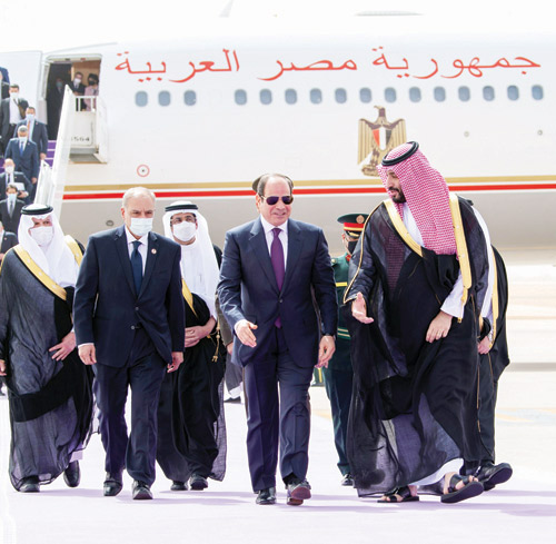 وكان فخامة الرئيس عبدالفتاح السيسي رئيس جمهورية مصر العربية، قد وصل الرياض أمس، وكان في استقبال فخامته بمطار الملك خالد الدولي، صاحب السمو الملكي الأمير محمد بن سلمان بن عبدالعزيز، ولي العهد نائب رئيس مجلس الوزراء وزير الدفاع، الذي رحب بفخامته في بلده الثاني المملكة العربية السعودية.