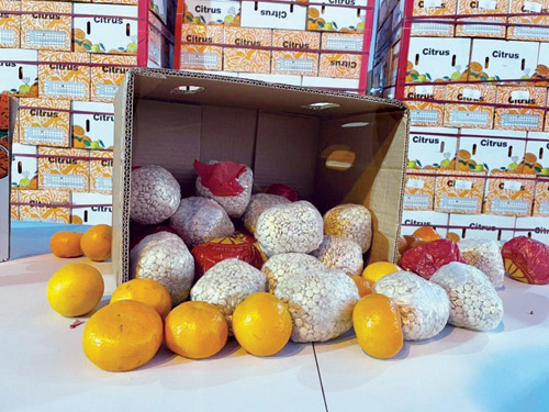 صرّح المتحدث الرسمي للمديرية العامة لمكافحة المخدرات الرائد محمد النجيدي؛ بأن المتابعة الأمنية لشبكات تهريب المخدرات التي تستهدف أمن المملكة وشبابها، أسفرت عن ضبط (1,272,000) قرص إمفيتامين مخدر بحوزة وافدَيْن بتأشيرة زيارة من الجنسية السورية؛ قاما بتهريبها إلى المملكة مخبّأة في شحنة برتقال، وقد تمّ القبض عليهما بمنطقة الرياض.
