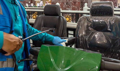 وأوضح وكيل الرئيس العام للخدمات والشؤون الميدانية وتحقيق الوقاية البيئية محمد بن مصلح الجابري أن أكثر من 4000 عامل وعاملة، يشرف عليهم 200 مشرف يقومون بغسل المسجد الحرام 10 مرات يومياً واستخدام 80 ألف لتر من المطهرات الصديقة للبيئة.