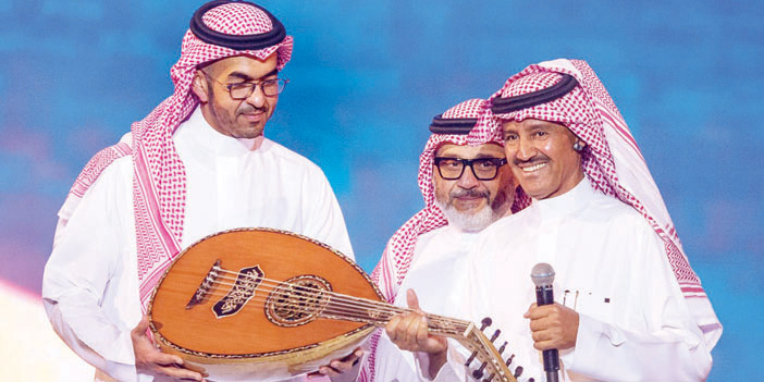 وبقيادة المايسترو أمير عبدالمجيد شهدت الليلة الغنائية للفنان خالد عبدالرحمن مجموعة من الأعمال التي يعود إطلاقها لفترة التسعينات الميلادية، ما أدى لتألق الكورال في توزيع الميداليات التي تم تقديمها كواحدة من مفاجآت الحفلة بمشاركة قرابة 50 عازفًا وموسيقيًّا على مسرح أبوبكر سالم. وترنم خالد عبد الرحمن بمجموعة من أغانيه الفريدة، من بينها: غريبة، وشلون ماغليك، إذا قسا وقتك، العطا، فراق، وغيرها من المقطوعات التي امتزج فيها القديم بالجديد، في ألحان متنوعة أثرت مسامع الحضور طيلة وقت الحفلة. وكرم أحمد المحمادي نائب الرئيس التنفيذي للتسويق والتواصل في الهيئة العامة للترفيه، الفنان خالد عبد الرحمن، بآلة عود مطلية بالذهب صنعت خصيصًا للفنان القدير تكريمًا له على تاريخه الفني في الأغنية السعودية.