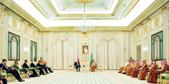 استقبل صاحب السمو الملكي الأمير محمد بن سلمان بن عبدالعزيز ولي العهد نائب رئيس مجلس الوزراء وزير الدفاع، في الديوان الملكي بقصر اليمامة، أمس، دولة رئيس الوزراء البريطاني السيد بوريس جونسون. وقد أجريت لدولته مراسم الاستقبال الرسمية. بعد ذلك عقد سمو ولي العهد ودولة رئيس الوزراء البريطاني جلسة مباحثات رسمية. وجرى خلال جلسة المباحثات بحث علاقات الصداقة والتعاون الثنائي بين البلدين في مختلف المجالات وفرص تطويرها، بالإضافة إلى استعراض القضايا الإقليمية والدولية ذات الاهتمام المشترك والجهود المبذولة بشأنها، بما فيها تطورات الأوضاع في أوكرانيا.