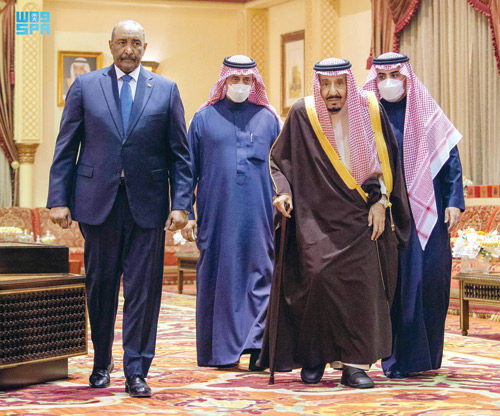 استقبل خادم الحرمين الشريفين الملك سلمان بن عبدالعزيز آل سعود -حفظه الله- في قصره بالرياض مساء أمس، فخامة الفريق الأول الركن عبدالفتاح البرهان رئيس مجلس السيادة الانتقالي بجمهورية السودان.