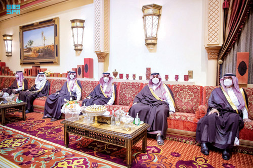 الأمير خالد بن سعد بن فهد، وصاحب السمو الملكي الأمير الدكتور منصور بن متعب بن عبدالعزيز مستشار خادم الحرمين الشريفين وزير الدولة عضو مجلس الوزراء، وصاحب السمو الملكي الأمير فيصل بن خالد بن عبدالعزيز مستشار خادم الحرمين الشريفين، وصاحب السمو الملكي الأمير محمد بن نواف بن عبدالعزيز مستشار خادم الحرمين الشريفين، وصاحب السمو الملكي الأمير سطام بن سعود بن عبدالعزيز، وصاحب السمو الأمير فيصل بن سعود بن محمد، وصاحب السمو الأمير الدكتور تركي بن سعود بن محمد المستشار في الديوان الملكي، وصاحب السمو الأمير أحمد بن عبدالله بن عبدالرحمن محافظ الدرعية، وصاحب السمو الملكي الأمير فيصل بن تركي بن عبدالعزيز المستشار في الديوان الملكي، وصاحب السمو الملكي الأمير تركي بن محمد بن فهد بن عبدالعزيز وزير الدولة عضو مجلس الوزراء، وصاحب السمو الملكي الأمير عبدالعزيز بن تركي الفيصل وزير الرياضة، وصاحب السمو الملكي الأمير عبدالعزيز بن سعود بن نايف بن عبدالعزيز وزير الداخلية، وصاحب السمو الملكي الأمير عبدالله بن بندر بن عبدالعزيز وزير الحرس الوطني، وصاحب السمو الملكي الأمير سعود بن سلمان بن عبدالعزيز، وصاحب السمو الملكي الأمير عبدالمجيد بن عبدالإله بن عبدالعزيز، ومعالي وزير الدولة عضو مجلس الوزراء مستشار الأمن الوطني الدكتور مساعد بن محمد العيبان (الوزير المرافق).