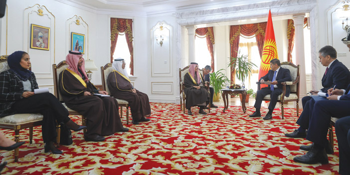وجرى خلال الاستقبال بحث العديد من القضايا والمستجدات الإقليمية والدولية ذات الاهتمام المشترك، ومناقشة سبل تعزيز التعاون الثنائي بين البلدين، وفرص تطويره في المجالات كافة بما يحقق المصالح المشتركة للبلدين والشعبين الصديقين. حضر اللقاء سفير خادم الحرمين الشريفين لدى قرغيزستان إبراهيم بن راضي الراضي، ومدير عام مكتب سمو وزير الخارجية الاستاذ عبد الرحمن الداود.