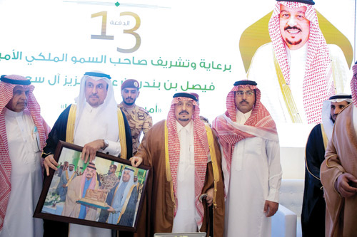 رعى صاحب السمو الملكي الأمير فيصل بن بندر بن عبدالعزيز أمير منطقة الرياض، حفل تخريج الدفعة الثالثة عشرة من طلاب جامعة المجمعة للعام الجامعي 1442- 1443هـ، وذلك في مبنى الجامعة. وكان في استقبال سموه لدى وصوله مقر الحفل صاحب السمو الأمير عبدالرحمن بن عبدالله بن فيصل محافظ المجمعة، ورئيس جامعة المجمعة الدكتور صالح بن عبدالله المزعل ووكلاء الجامعة وعمداء الكليات.