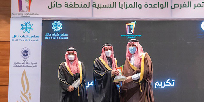 وفي ختام الحفل كرَّم سمو أمير حائل المشاركين والمساهمين بنجاح المؤتمر.