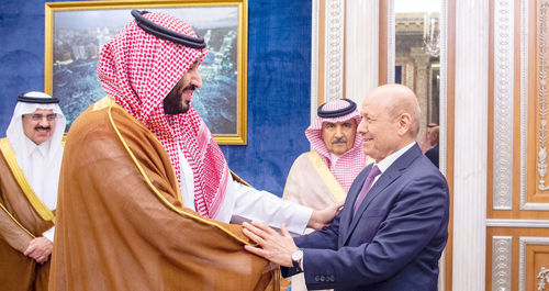 استقبل صاحب السمو الملكي الأمير محمد بن سلمان بن عبدالعزيز ولي العهد نائب رئيس مجلس الوزراء وزير الدفاع، فخامة رئيس مجلس القيادة الرئاسي اليمني وأعضاء المجلس.