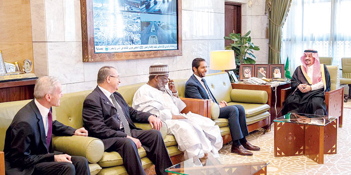 من جهة ثانية استقبل سمو أمير منطقة الرياض في مكتبه بقصر الحكم أمس عميد السلك الدبلوماسي سفير جمهورية جيبوتي لدى المملكة ضياء الدين سعيد بامخرمة، ورؤساء المجموعات الجغرافية المعتمدين لدى المملكة. وقدّم السفراء لسموه التهنئة باسمهم ونيابة عن جميع أعضاء السلك الدبلوماسي المعتمدين لدى المملكة بشهر رمضان المبارك. وبادلهم سموه التهنئة معرباً عن شكره للجميع على مشاعرهم الطيبة، سائلاً الله العلي القدير أن يعيد الشهر الفضيل على الجميع بالخير والنماء والازدهار. كما استقبل سمو أمير منطقة الرياض في مكتبه بقصر الحكم أمس الرئيس التنفيذي لشركة مطارات القابضة المهندس محمد بن أحمد الموكلي، الذي قدم التهنئة لسموه بشهر رمضان المبارك. وسأل سموه الله العلي القدير أن يتقبل من الجميع الصيام والقيام وصالح الأعمال.