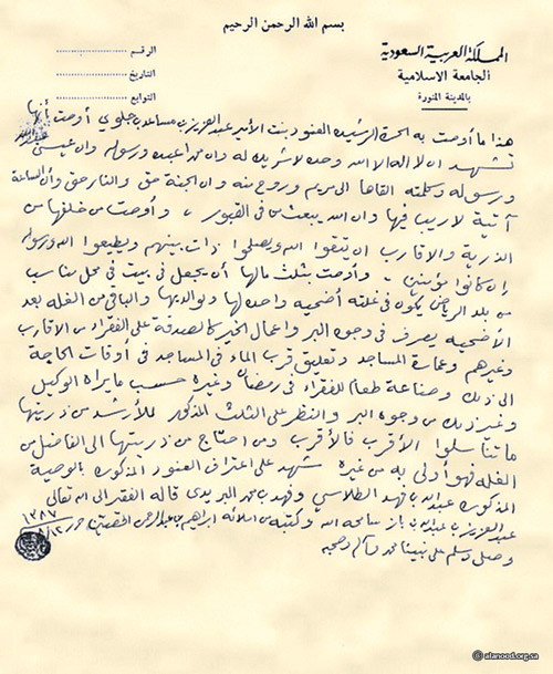 مبادرة الخير والعطاء، التي حرصت على كتابتها رحمها الله في 12-8-1387هـ الموافق 14-11-1967م وعمرها آنذاك «27» عاماً؛ كان إيماناً منها بثقافة الوقف الخيري وأثره في دعم التنمية والعمل الخيري، وتحقيق نهضة وتقدم المجتمع.