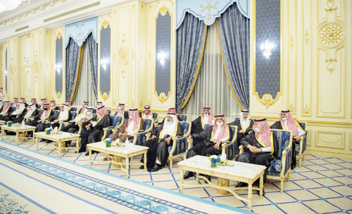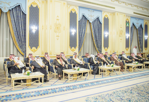 استقبل خادم الحرمين الشريفين الملك سلمان بن عبدالعزيز آل سعود - حفظه الله -، بحضور صاحب السمو الملكي الأمير محمد بن سلمان بن عبدالعزيز ولي العهد نائب رئيس مجلس الوزراء وزير الدفاع، أمس أصحاب السمو الأمراء، وأصحاب الفضيلة العلماء والمعالي، وجمعاً من المواطنين الذين قدموا للسلام عليه - رعاه الله-. وفي بداية الاستقبال، أنصت الجميع لتلاوة آيات من القرآن الكريم.