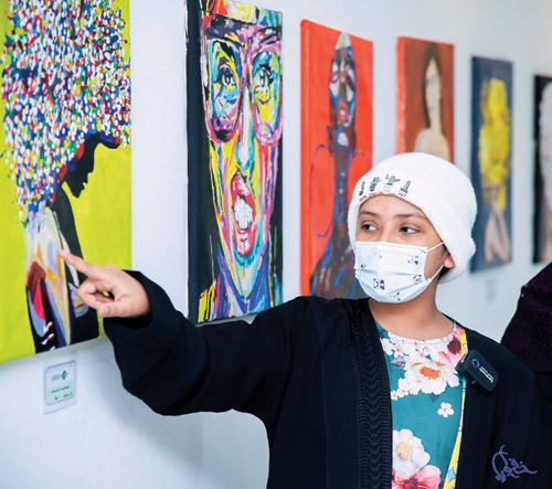 العنود العلي هي فنانة تشكيلية موهوبة تبلغ من العمل (13) عاماً ، أحبت الرسم وألفته في أوقات وحدة كانت مجبرة عليها، في من محاربي الأورام نسأل الله أن يتم شفاءها، بعدما اكتشف الأطباء مرضها وبدأت رحلتها العلاجية في مركز الملك فهد الوطني لأورام الأطفال، حيث أصبح جل وقتها بالمركز وبدأت بعلاج صعب فاكتشف الفريق الطبي المسؤول عن علاجها شغفها الفني، حيث كانت ترسم بغزارة وإنتاج كبير على أوراق بسيطة وأقلام رصاص ثم تم توفير خامات فنية لنبدأ مسيرة إبداعية حملت بينها قصص وقصص رافقتها طوال مدة علاجها وإقامتها في المستشفى وتنتج بهذا الوقت عشرات الأعمال الفنية وأقام المركز لها معرضاً شخصياً مصغراً ليكون أول خطوة لها.