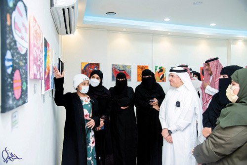 وحضر سفير الإنسانية الفنان فايز المالكي المعرض دعماً وتشجيعاً للفنانة العنود معبراً عن إعجابه بأعمالها وأفكارها الإبداعية.