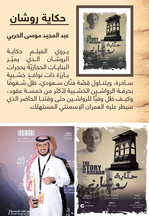 حكاية الروشان أخرجه المبدع الأستاذ عبدالمجيد الحربي وأنتجته شركة كام ستيج والحائز على النخلة الذهبية في مهرجان أفلام السعودية الـ7 كأفضل فيلم وثائقي.
