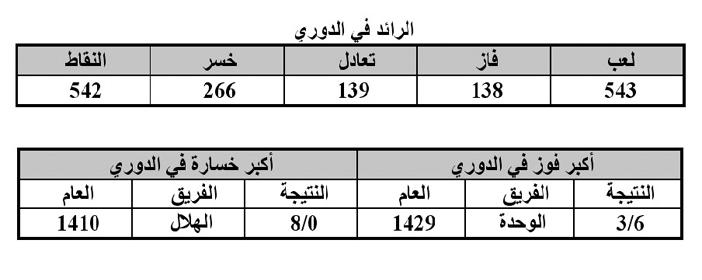 - أكثر سجل انتصارات بواقع 13 فوزاً موسم 1440.