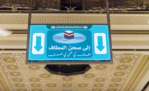 تعمل وكالة الشؤون الفنية والتشغيلية والصيانة وإدارة المرافق بالرئاسة العامة لشؤون المسجد الحرام والمسجد النبوي بإدارة المنظومة الإرشادية من خلال بث الرسائل التوعوية عبر (63) شاشة إلكترونية داخل المسجد الحرام و (25) شاشة إلكترونية بالساحات المحيطة به، والتي تعمل على مدار الساعة لإرشاد وتوعية المعتمرين والمصلين. ويتم من خلال الشاشات عرض محتوى إرشادي وتوجيهي للاستدلال على أهم المواقع داخل المسجد الحرام، كصحن المطاف والمسعى وتذكير الطائفين والساعين بالأدعية النبوية لذكرها في بدايات ونهايات الطواف والسعي، ورسائل توعوية أخرى في الجانب الصحي والأمني والإثراء المعرفي.