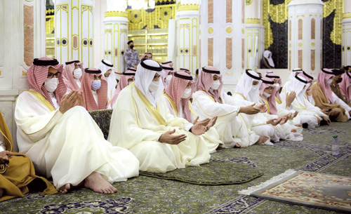 استقبل صاحب السمو الملكي الأمير فيصل بن سلمان بن عبدالعزيز أمير منطقة المدينة المنورة، وصاحب السمو الملكي الأمير سعود بن خالد الفيصل نائب أمير المنطقة، جموع المهنئين بعيد الفطر المبارك من أصحاب الفضيلة وأصحاب المعالي، ومشايخ القبائل، وكبار المسؤولين من مدنيين وعسكريين، وجمعاً من المواطنين من أهالي المدينة المنورة، الذين قدموا للسلام على سموهما وتهنئتهما بعيد الفطر المبارك.