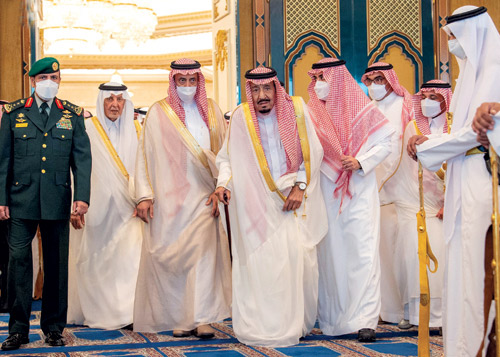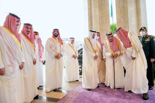 ولدى وصول خادم الحرمين الشريفين، الديوان الملكي بقصر الصفا، كان في استقباله - أيده الله - صاحب السمو الملكي الأمير خالد الفيصل بن عبدالعزيز مستشار خادم الحرمين الشريفين أمير منطقة مكة المكرمة، وصاحب السمو الملكي الأمير عبدالإله بن عبدالعزيز آل سعود المستشار الخاص لخادم الحرمين الشريفين، وصاحب السمو الملكي الأمير محمد بن سلمان بن عبدالعزيز ولي العهد نائب رئيس مجلس الوزراء وزير الدفاع، وصاحب السمو الملكي الأمير بدر بن سلطان بن عبدالعزيز نائب أمير منطقة مكة المكرمة، وصاحب السمو الملكي الأمير عبدالعزيز بن سعود بن نايف بن عبدالعزيز وزير الداخلية.