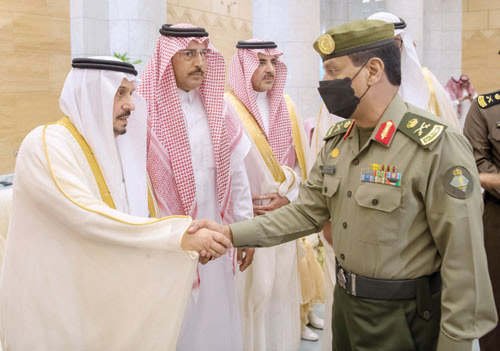 استقبل صاحب السمو الملكي الأمير فيصل بن بندر بن عبدالعزيز أمير منطقة الرياض، في قصر الحكم أمس أصحاب السمو الأمراء وأصحاب الفضيلة والمعالي وكبار مسؤولي منطقة الرياض، وكبار ضباط القوات المسلحة، والحرس الوطني، والأمن العام، وحرس الحدود، وقوات الأمن الخاصة، والدفاع المدني، والمرور، وجمعاً من المواطنين، الذين قدموا للسلام على سموه وتهنئته بعيد الفطر المبارك.