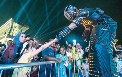 كما لفت أنظار الجمهور المسرح المائي، والمسيرات الاستعراضية المتحركة التي تقدم فقراتها على امتداد ساحات المنطقة، حيث حظيت هذه العروض الحية باهتمام كبير من مختلف الفئات العمرية للاستمتاع بالفقرات المقدمة، والاصطفاف حولها لتصويرها والتفاعل معها وسط مشاركة الأطفال حالة السعادة والفرح التي يعيشونها مع كل عرض.