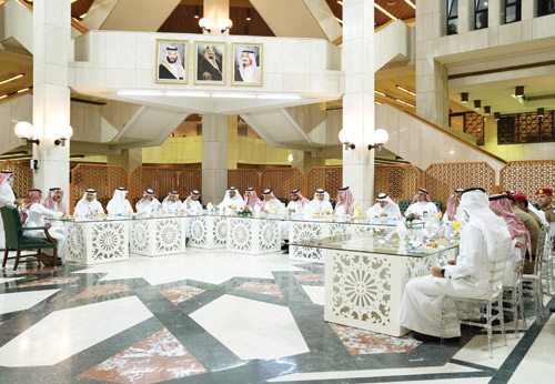 واستقبل مستشار خادم الحرمين الشريفين أمير منطقة مكة المكرمة صاحب السمو الملكي الأمير خالد الفيصل في مقر الإمارة بجدة، مديري الجهات الحكومية وقادة القطاعات العسكرية بالمنطقة، الذين قدموا للسلام على سموه وتهنئته بعيد الفطر المبارك.