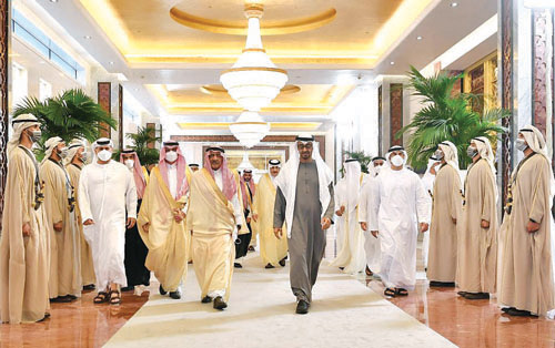من جانبه أعرب صاحب السمو الشيخ محمد بن زايد آل نهيان عن جزيل شكره وتقديره للمشاعر الصادقة التي أبداها أصحاب السمو الملكي تجاه دولة الإمارات وشعبها في مصابهم، معبراً عن شكره على التهنئة بتوليه قيادة الدولة والتمنيات الطيبة الصادقة التي عبروا عنها.