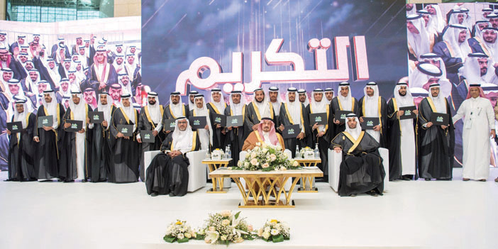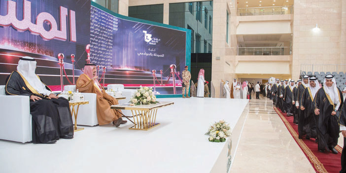 رعى صاحب السمو الملكي فيصل بن بندر بن عبدالعزيز أمير منطقة الرياض أمس حفل تخريج الدفعة الـ13 من طلاب جامعة شقراء البالغ عددهم 5061 في مقر المدينة الجامعية بمحافظة شقراء. وكان في استقبال سموه لدى وصوله محافظ شقراء عادل بن عبدالله البواردي ورئيس الجامعة الدكتور علي بن محمد السيف ووكلاء الجامعة وعمداء الكليات والعمادات المساندة. وأقيم حفل خطابي بهذه المناسبة حيث ألقى رئيس الجامعة كلمة رحب فيها بسمو أمير منطقة الرياض وتشريفه للحفل الذي يؤكد حرصه ومتابعته للجامعة ومنسوبيها. وأضاف أن هذا الوطن بقيادة خادم الحرمين الشريفين الملك سلمان بن عبدالعزيز وسمو ولي عهده الأمين -حفظهما الله- يعيش عصرا من الإنجازات ومسابقة للزمن والسعي لتحقيق نجاحات في مجالات عدة .. ولذا يحق لنا أن نفتخر ونفاخر بقيادة جعلت المواطن محور الاهتمام وراهنت على علو همته وتحقيق أهدافه. وأشار إلى أن الخريجين ركيزة أساسية في رؤية المملكة 2030 وينتظر منهم المساهمة في تحقيق مستهدفاته للوصول إلى المكانة التي يستحقها. بعدها قدم عميد القبول والتسجيل بالجامعة الدكتور سعد الجبرين الخريجين وتخصصاتهم في مسيرة طلابية حيث بلغ عدد خريجي هذا العام (5061) خريجاً وخريجة من 23 كلية من إجمالي أكثر من 52 ألف طالب وطالبة تم تخريجهم منذ تأسيس الجامعة. كما ألقى الطالب تركي العتيبي كلمة الخريجين عبر فيها عن شكرهم وتقديرهم لسمو أمير منطقة الرياض على مشاركتهم اليوم الحفل وتعزيز مسيرتهم العلمية واللفتة الكريمة من سموه. وتضمن الحفل عرضًا مرئيًا عن إنجازات الجامعة خلال السنوات الماضية وأوبريت بالإضافة إلى قصة كفاح سلطت الضوء على تجربة طالب نجح في استكمال مسيرته التعليمية في كلية الطب بجامعة شقراء رغم إعاقته الحركية. وفي الختام كرم سمو أمير منطقة الرياض الخريجين الحاصلين على الترتيب الأول في مختلف كليات الجامعة وعددهم (22) طالباً كما تسلم سموه هدية تذكارية بهذه المناسبة.