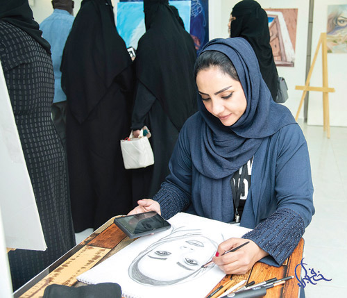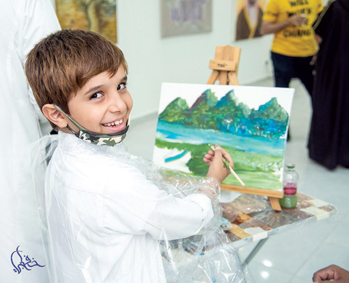 تضمنت المعايدة عرضاً لأعمال تشكيلية في صالة الجمعية وورشاً تفاعلية ورسماً مباشراً لأعضاء الجمعية وجلسات حوارية فنية بين الفنانين.