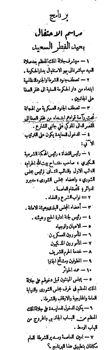 نشرت صحيفة أم القرى، وهي الصحيفة الرسمية والصحيفة السعودية الأولى مراسم الاحتفال بعيد الفطر في مكة المكرمة بحضور الملك المؤسس عبدالعزيز بن عبدالرحمن الفيصل - طيَّب الله ثراه.