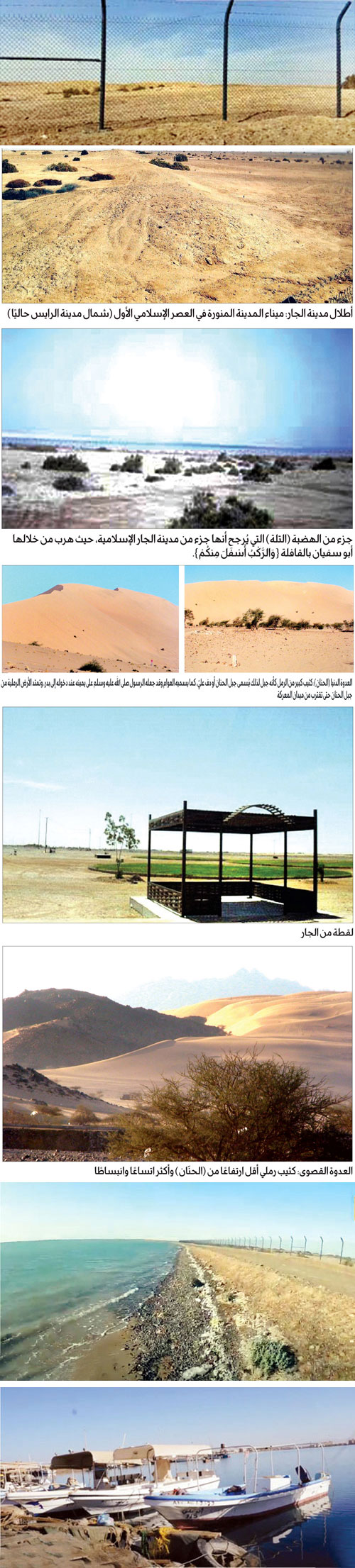 وقال الحميري في كتابه (الروض المعطار في خبر الأقطار): «مدينة بالحجاز على ساحل البحر مما يلي المدينة وهي آهلة عامرة كانت قبل هذا مدينة قريبة من جدّه والمراكب إليها قاصدة ومقلعة وليس بها كبير تجارة، ومن الجار إلى جدّه نحو عشرة أيام في البرّ بطول الساحل، والبحر يبعد تارة ويقرب أخرى، وأكثر هذه المراحل في رمال ناشفة وطرق دارسة يستدل فيها بالبحر والجبال. وقالوا: البحر الأعظم من المدينة على ثلاثة أيام وساحلها موضع يقال له الجار، وفيه ترسي المراكب التي تحمل الطعام من مصر، ومدينة الجار مدينة مسوّرة وهي ساحل مدينة النبي صلى الله عليه وسلم وهي حسنة البناء جدا والبحر يضرب سورها، ولها أسواق ومسجد جامع ولها أحساء خارج المدينة يسقون منها ولهم مواقع تحفظ ماء المطر...».