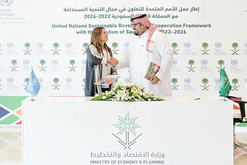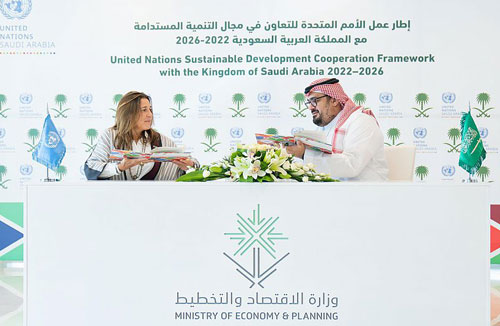 وقع معالي وزير الاقتصاد والتخطيط الأستاذ فيصل بن فاضل الإبراهيم، والمنسقة المقيمة للأمم المتحدة في المملكة نتالي فوستيه، اتفاقية في إطار عمل الأمم المتحدة للتعاون في مجال التنمية المستدامة (UNSDCF 2022-2026). وستسهم الاتفاقية في تعزيز التعاون والالتزام المشترك لتسريع وتيرة التقدم المحرز في مجالات التنمية المستدامة بالمملكة تحت إطار أجندة الأمم المتحدة 2030 وأهدافها الـ17 للتنمية المستدامة، التي تتوافق مع رؤية المملكة 2030 وبرامجها للنمو الاقتصادي والاجتماعي.