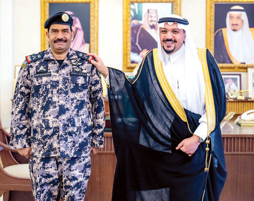من جهة أخرى: قلَّد صاحب السمو الملكي أمير منطقة القصيم بمكتبه, قائد قوات أمن المنشآت بالمنطقة عبدالعزيز الجهنى رتبته الجديدة، وذلك بعد صدور الأمر الملكي الكريم بترقيته لرتبة لواء.