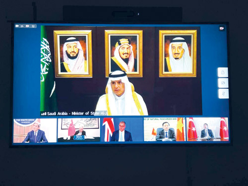 ترأس معالي وزير الدولة للشؤون الخارجية عضو مجلس الوزراء مبعوث شؤون المناخ الأستاذ عادل بن أحمد الجبير، وفد المملكة المشارك في منتدى الاقتصادات الكبرى حول الطاقة والمناخ (MEF)، الذي دعا إليه وافتتحه فخامة الرئيس جوزيف بايدن رئيس الولايات المتحدة الأمريكية. وافتتح معاليه كلمة المملكة، التي ألقاها عبر (تقنية الفيديو) بالشكر لفخامة رئيس الولايات المتحدة على استضافة هذه القمة المهمة، في مثل هذا الوقت الذي يواجه فيه العالم تحديات التغير المناخي. ودعا معاليه، إلى العمل بشكل جاد على استجابة دولية مشتركة وفاعلة، وحشد جميع الجهود لمواجهتها، والأخذ بالاعتبار الظروف الخاصة التي تواجهها الدول الأقل نمواً، ودعمها لمواجهة الآثار السلبية لسياسات التغير المناخي، دون إعاقة تنميتها المستدامة.