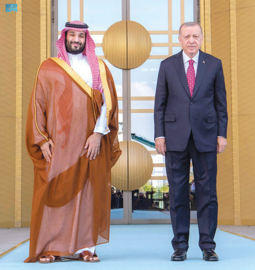انطلاقاً من العلاقات الأخوية المتميزة والروابط التاريخية الراسخة التي تجمع قيادتي المملكة العربية السعودية وجمهورية تركيا وشعبيهما الشقيقين، وتلبية لدعوة كريمة من فخامة رئيس جمهورية تركيا السيد/ رجب طيب أردوغان، قام صاحب السمو الملكي الأمير محمد بن سلمان بن عبدالعزيز آل سعود، ولي العهد نائب رئيس مجلس الوزراء بزيارةٍ إلى جمهورية تركيا في 22 يونيو/ حزيران 2022. وقد استقبل سموه الكريم فخامة رئيس جمهورية تركيا السيد/ رجب طيب أردوغان حيث جرت مراسم الاستقبال الرسمية في المجمع الرئاسي. وفي جو سادته روح المودة والإخاء، بما يجسد عمق العلاقات المتميزة بين البلدين، عُقدت جلسة مباحثات رسمية بين صاحب السمو الملكي الأمير محمد بن سلمان بن عبدالعزيز آل سعود وفخامة الرئيس رجب طيب أردوغان. جرى خلال المباحثات استعراض العلاقات الثنائية بين البلدين من مختلف الجوانب، وتم التأكيد بأقوى صورة على عزمهما المشترك لتعزيز التعاون في العلاقات الثنائية بين البلدين بما في ذلك المجالات السياسية والاقتصادية والعسكرية والأمنية والثقافية، وتبادل الجانبان وجهات النظر حيال أبرز المستجدات الإقليمية والدولية ذات الاهتمام المشترك.