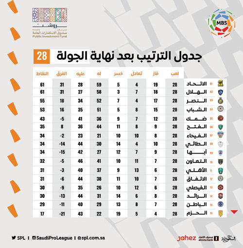 وفي مواجهة أصعب من سابقتها يلتقي الاتفاق المهدد بالهبوط بالاتحاد الساعي للتشبث بالأمل في اللقب في مباراة ستكون عصيبة سترمي بأمل أحدهما أدراج الرياح، فيدخل الاتفاق بعد التعادل مع الفيصلي بهدف لمثله ويحتل المركز الثاني عشر برصيد 31 ولا يزال الخطر يهدده بشكل كبير وسيبحث عن الفوز ليضمن البقاء بشكل شبه رسمي، فيما يدخل الاتحاد ولا شيء لديه سوى النقاط الثلاث لتعويض تعثره في جولات الحسم وخسر أمام الطائي 0-2 وتوقف رصيده على 61 نقطة وخسر صدارته لصالح منافسه الهلال وسيرمي بكامل ثقله للفوز على أمل تعثر الهلال ليستعيد فرصته في الحصول على اللقب.