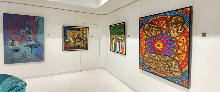 إلى آثار إبراهيم الفصام التاريخية ومفردات عسير لدى عبدالله حماس وأعمال د.سلطان الزياد الغنية بمفرداتها وأعمال فهد غرمان الجنوبية وتجريديات محمد المجرشي وأزهار علوية العمودي المميزة وأعمال د.مالك حافظ الرقمية.