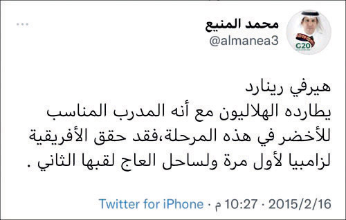 استمراراً لنظرته الفنية الثاقبة، وتوقعاته الرياضية الصائبة، فقد أثبت رئيس الاتحادين العربي والسعودي لكرة اليد وعضو اللجنة الأولمبية السعودية الأسبق الأستاذ محمد المنيع بُعد نظره، وأكد صحة توقعاته، والتي لم تأت من فراغ، بل من خبرة رياضية شاملة، وتجربة سابقة ناجحة، ودراية يشهد بها الكثيرون، فقد تنبأ بنجاح المدرب الوطني الكابتن سعد الشهري، وأوضح أنه سيكون رقماً صعباً في رياضتنا مستقبلاً بتراكم التجارب، وبصقل الموهبة بعد تراكم الخبرة، فها هو الشهري يقود أخضرنا لسيادة القارة الصفراء بكل جدارة وبأرقام قياسية تمثَّلت بنظافة الشباك، وعدم الخسارة، والأداء القتالي متوجاً بكأس اللعب النظيف، وكذلك تحقيق جائزتي أفضل لاعب وحارس، وكل هذه المنحزات يقف خلفها فريق فني مبدع يقوده الوطني سعد الشهري. وسبق للمنيع أن راهن على مدرب الأخضر هيرفي رينارد حين أُعلن التعاقد معه، وأكد أنه المدرب المناسب للأخضر، وقد شاهدنا نجاحات رينارد في التصفيات، وقيادته للأخصر لمونديال قطر 2022 بصدارة المجموعة بكل جدارة واستحقاق.