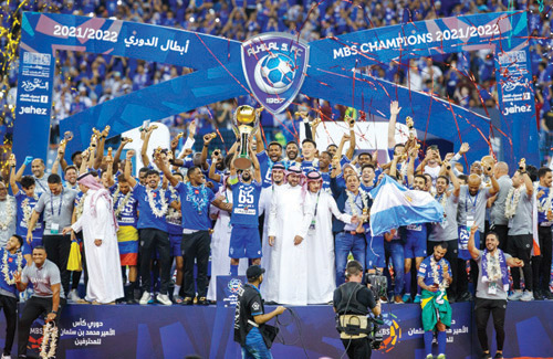 حسمها الرجال أبطال الهلال.. حسمها الزعيم وانتزع بطولة دوري الأمير محمد بن سلمان للمرة الثالثة على التوالي والـ18 في تاريخ المسابقة.. حسمها الزعيم بعد أن كان الجميع يتوقعون أن لا أمل له في المنافسة، ولكن لأنه فريق لديه كاريزما البطل وروح البطل ولايرضى بغير القمة بديلا فقد تجاوز كل العراقيل والعقبات وهزم الظروف والإرهاق والإصابات والإيقافات التي بدأت مبكرا وجندل الخصوم ليشق طريقه نحو منصة التتويج كما هي عادته.
