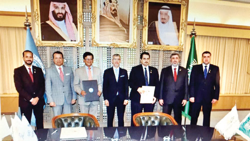 وأثنى السفير الدكتور الواصل خلال اللقاء على الجهود الكبيرة التي تقوم بها الجامعة وخاصة فيما يتعلق في إبراز جهود المملكة والخطوات الكبيرة التي قطعتها في تنفيذ أهداف التنمية المستدامة لعام 2030، كما تم توقيع اتفاقية عقد خدمات تدريبية وبحثية واستشارية مع معهد الأمم المتحدة للتدريب والبحث ( اليونيتار ) unitar في جنيف، وذلك لتعزيز التعاون في المجالات ذات الاهتمام المشترك في التدريب والتطوير والبحث ، وتعزيز العمل المشترك في تحقيق أهداف الأمم المتحدة للتنمية المستدامة.