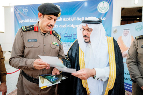 وقف صاحب السمو الملكي الأمير الدكتور فيصل بن مشعل بن سعود بن عبدالعزيز أمير منطقة القصيم أمس على جاهزية مختلف الأعمال الخدمية والتسهيلات التي تقدم من قبل الجهات الحكومية والخيرية المشاركة في مدينة الحجاج بالمنطقة الواقعة على طريق القصيم - الرياض السريع جنوب مدينة بريدة، لضيوف الرحمن أثناء مرورهم بالمنطقة في طريقهم إلى الديار المقدسة لأداء مناسك الحج، يرافقه وكيل إمارة القصيم الدكتور عبدالرحمن الوزان ومديرو القطاعات الخدمية والأمنية بالمنطقة.