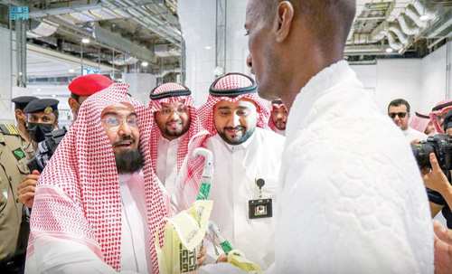 دشّن معالي الرئيس العام لشؤون المسجد الحرام والمسجد النبوي الشيخ الدكتور عبدالرحمن بن عبدالعزيز السديس مساء أمس الأول, حملة «بلغاتكم نرحب بكم ميدانياً» التي تعنى بخدمة ضيوف الرحمن بالمسجد الحرام وإرشادهم بـ(23) لغة، من خلال (100) مرشد موزعين داخل المسجد الحرام على مدار (24) ساعة. وأوضح معاليه أن الحملة تهدف إلى خدمة ضيوف الرحمن بعدد من اللغات العالمية التي تعين حجاج بيت الله الحرام وتذليل الصعوبات في التحدث بلغاتهم, مبيناً أن سلاسة أسلوب المترجم، وتوفر القدرة على التعبير بلغة واضحة وغير معقدة، أهلية المترجم العلمية ومعرفته التامة للغة العربية واللغة المترجم إليها.
