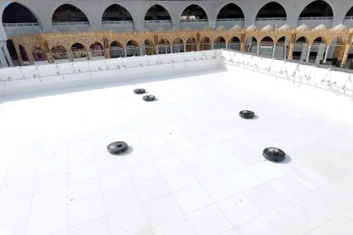 استحدثت وكالة الخدمات والشؤون الميدانية وتحقيق الوقاية البيئية بالرئاسة العامة لشؤون المسجد الحرام والمسجد النبوي، العديد من الروبوتات الذكية، التي من بينها مكانس تطهير سطح الكعبة الذكية ، بغية تجويد مخرجات منظومة خدمات التعقيم والتطهير الذكي.