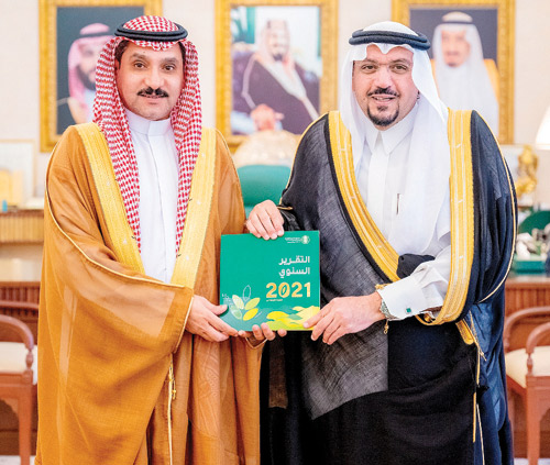 كما تسلّم صاحب السمو الملكي أمير منطقة القصيم، التقرير السنوي الـ58 لصندوق التنمية الزراعية بالمنطقة للعام المالي2021-1442هـ . جاء ذلك خلال استقباله, مدير عام فرع الصندوق بالمنطقة أحمد العليقي، الذي قدم لسموه شرحاً مفصلاً عن جهود الصندوق خلال العام الماضي، مشيراً إلى أن التقرير يبين حجم القروض الزراعية وقروض النخيل وقروض مربي الماشية وعدد المشروعات التي تم تمويلها عبر الصندوق في منطقة القصيم. ونوّه سموه خلال اللقاء بدعم حكومة خادم الحرمين الشريفين الملك سلمان بن عبدالعزيز, وسمو ولي عهده الأمين - حفظهما الله - للتنمية الزراعية المستدامة والحرص على تنويع القاعدة الاقتصادية للوطن, مشيدًا بجهود العاملين بالصندوق وإنجازاتهم.