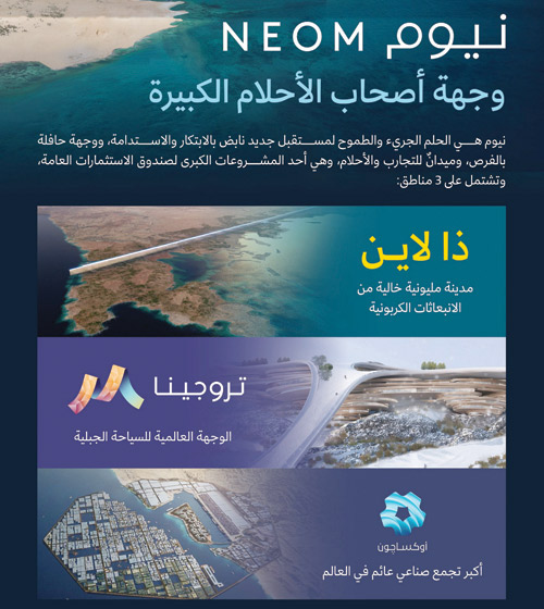 وتتضمن هذه الاستثمارات دعماً حكومياً بقيمة 200 إلى 300 مليار ريال، إضافة إلى استثمار الصندوق الذي سيبلغ نحو 500 مليار ريال. وبيّن سمو ولي العهد أن طرح نيوم للاكتتاب سيتم عام 2024، وأضاف سموه أن الطرح العام لـ»نيوم» في السوق السعودي سيضيف نحو تريليون ريال لحجم سوق الأسهم السعودية, وتهدف نيوم في النهاية إلى عائد استثمار بنسبة 13 إلى 14 في المائة.