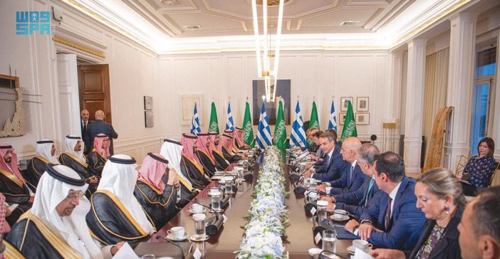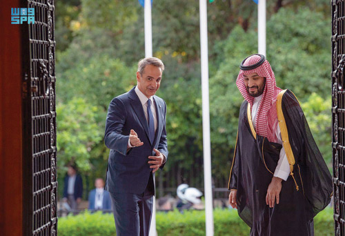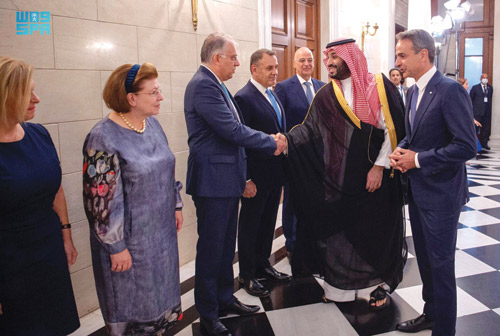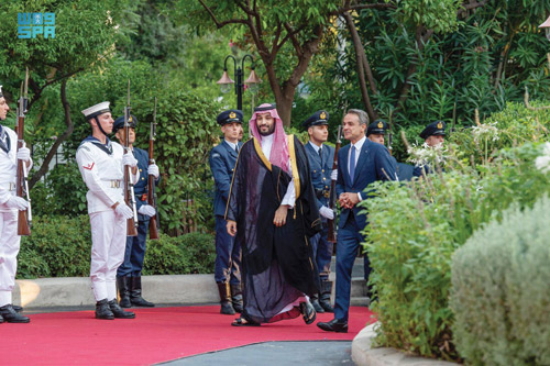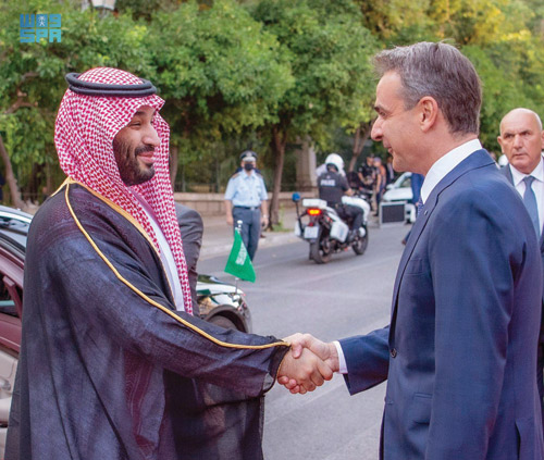 في إطار العلاقات الثنائية المتميزة بين المملكة العربية السعودية والجمهورية الهيلينية، وبدعوة كريمة من دولة رئيس الوزراء/ كيرياكوس ميتسوتاكيس، قام صاحب السمو الملكي الأمير/ محمد بن سلمان بن عبدالعزيز آل سعود ولي العهد نائب رئيس مجلس الوزراء، بزيارة رسمية للجمهورية الهيلينية خلال المدة 27-28/12/1443هـ الموافق 26-27/7/2022م. واستقبل دولة رئيس الوزراء في الجمهورية الهيلينية/ كيرياكوس ميتسوتاكيس صاحب السمو الملكي الأمير/ محمد بن سلمان بن عبدالعزيز آل سعود ولي العهد نائب رئيس مجلس الوزراء، وعقدت جلسة مباحثات رسمية بين سموه ودولته، استعرضا خلالها علاقات الصداقة الوثيقة بين البلدين، وسبل تطويرها في جميع المجالات، كما تم تبادل وجهات النظر حول مجمل الأوضاع الإقليمية والدولية الراهنة. وأشاد كل من صاحب السمو الملكي ولي العهد ودولة رئيس وزراء الجمهورية الهيلينية بالشراكة القوية التي تربط البلدين وتطورها على مدى السنوات الماضية، وأكدا عزمهما على العمل لتوطيدها لمصلحة شعبي البلدين. كما أكد الجانبان تميز وقوة العلاقات بين البلدين ورغبتهما المشتركة في الارتقاء بها إلى مستوى استراتيجي.