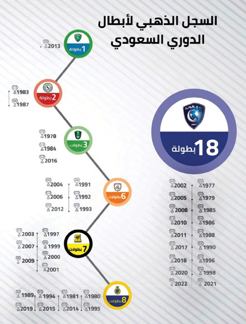 فالتنافس المحموم بين أندية الوطن من أجل الظفر بلقب الدوري سمة بارزة وحكاية طويلة فصولها ممتدة إلى أبعد مدى من الإثارة في الدوري الذي شهد عدة مسميات وآليات وأنظمة جميعها صبت لتنصب بطلاً واحداً للدوري، ويسرنا عبر «الجزيرة» أن نقدم أرقام الدوري من خلال هذا الرصد التاريخي: