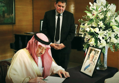 نيابة عن صاحب السمو الأمير فيصل بن فرحان بن عبدالله وزير الخارجية قدم معالي نائب وزير الخارجية المهندس وليد بن عبدالكريم الخريجي أمس واجب العزاء والمواساة، في وفاة جلالة الملكة اليزابيث الثانية ملكة المملكة المتحدة لبريطانيا العظمى وإيرلندا الشمالية، وذلك في سفارة المملكة المتحدة بالرياض. وكان في استقبال معاليه سفير المملكة المتحدة لدى المملكة نيل كرومبتون.