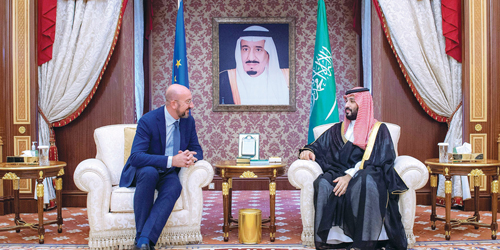 من جهة ثانية التقى صاحب السمو الملكي الأمير محمد بن سلمان بن عبدالعزيز ولي العهد نائب رئيس مجلس الوزراء، في الديوان الملكي بقصر السلام بجدة أمس رئيس المجلس الأوروبي السيد شارل ميشيل. وجرى خلال اللقاء استعراض العلاقات التاريخية والتعاون القائم بين المملكة ودول الاتحاد الأوروبي في مختلف المجالات بما في ذلك المجالات المتعلقة بالطاقة والبيئة والتغير المناخي. كما بحثا الأوضاع الإقليمية والدولية والجهود المبذولة حيالها من أجل تحقيق الأمن والاستقرار في المنطقة والعالم.