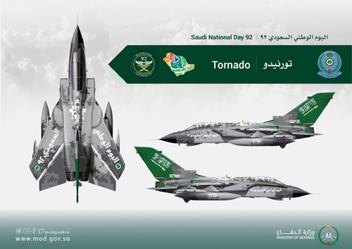 كشفت وزارة الدفاع عن هوية الطائرات التي سوف تشارك بها القوات الجوية الملكية السعودية في فعاليات العرض الجوي بمناسبة اليوم الوطني للمملكة (92) والتي تحتفل به المملكة في 22 من هذا الشهر لعام 2022.
