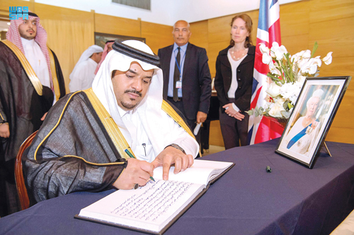 قام صاحب السمو الملكي الأمير محمد بن عبدالرحمن بن عبدالعزيز أمير منطقة الرياض بالنيابة بزيارة أمس لسفارة المملكة المتحدة بالمملكة قدم خلالها العزاء والمواساة في وفاة جلالة الملكة اليزابيث الثانية ملكة المملكة المتحدة لبريطانيا العظمى وإيرلندا الشمالية. ودوّن سموه كلمة في سجل التعازي جاء فيها: أتقدم ببالغ التعازي وصادق المواساة لجلالة الملك تشارلز الثالث ملك المملكة المتحدة لبريطانيا العظمى وإيرلندا الشمالية وللأسرة المالكة وشعب المملكة المتحدة الصديق في وفاة جلالة الملكة اليزابيث الثانية ملكة المملكة المتحدة لبريطانيا العظمى وإيرلندا الشمالية والعزاء موصول لأعضاء سفارة المملكة المتحدة في المملكة والجالية البريطانية والإيرلندية في المملكة. وأضاف: لقد أمضت حياتها في خدمة وطنها وشهدت مسيرتها السلام والمحبة واليوم يخلد التاريخ إنجازاتها العظيمة، متمنيا للجميع التوفيق في خدمة بلدينا الصديقين والشكر لأعضاء سفارة المملكة المتحدة في المملكة على استقبالهم وحفاوتهم الكريمة.
