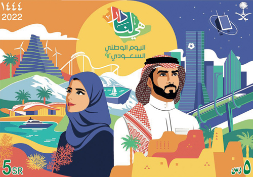 وابتهاجاً بهذه الذكرى الغالية، واستمراراً لدورها في توثيق المناسبات الوطنية، والتعريف بالمنجزات الحضارية المختلفة، أصدرت مؤسسة البريد السعودي|سبل طابعاً بريدياً تذكارياً من فئة 3 ريالات، وبطاقةً بريدية من فئة 5 ريالات، احتوت على ثمانية مشاريع رائدة، تشكل الهوية الوطنية لرؤية الوطن 2030 في دلالات ورمزية لمشاريع القطارات، مشروع ذا لاين «نيوم»، مشروع بوابة الدرعية، القمر الصناعي شاهين سات، البرنامج الوطني للطاقة المتجددة، مشروع أمالا، مشروع القدية، مشروع تروجينا «نيوم».